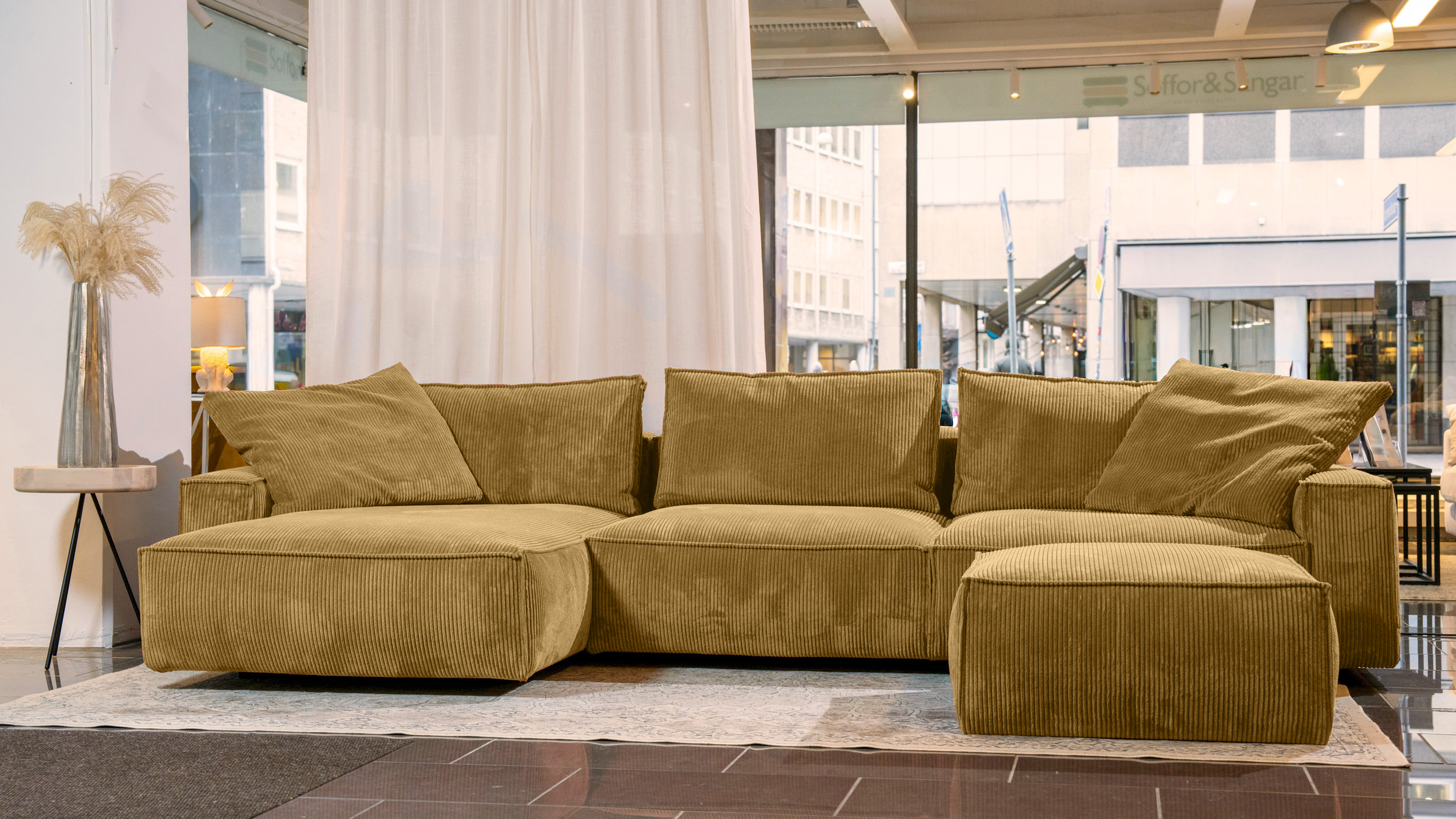 I lager: Robust 3-sits Maxi divansoffa Vänsterställd Senap